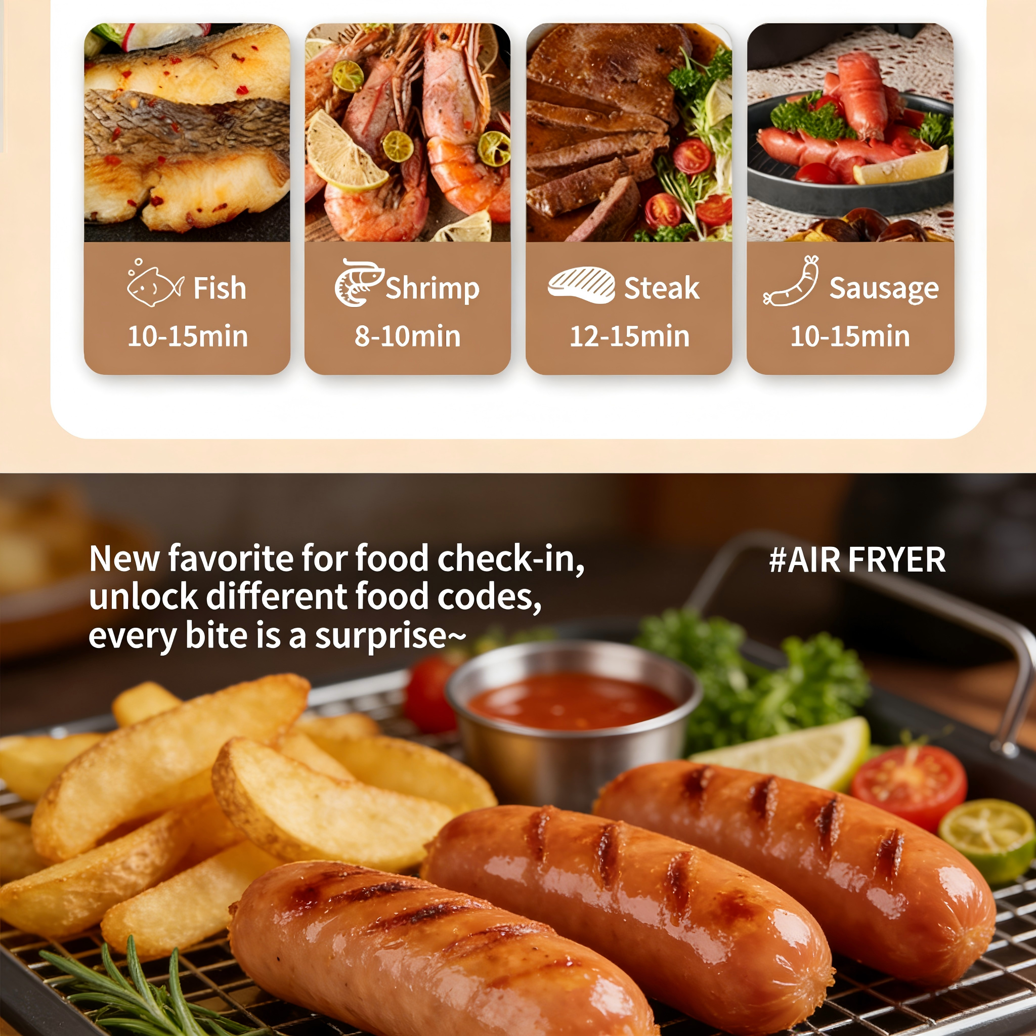 Questa potente friggitrice ad aria digitale da 5L ti permette di gustare patatine fritte croccanti, pollo succulento e spuntini deliziosi con pochissimo o nessun olio — senza sensi di colpa e pieni di sapore.